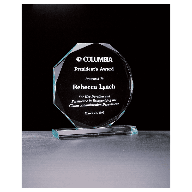 Honor excellence and recognize achievement with our premium Octagon Series Jade Acrylic Award. Featuring stunning 3/4" thick acrylic construction with a distinctive octagon design on a stable acrylic base, this award delivers sophisticated elegance while offering exceptional durability for lasting recognition and display.
